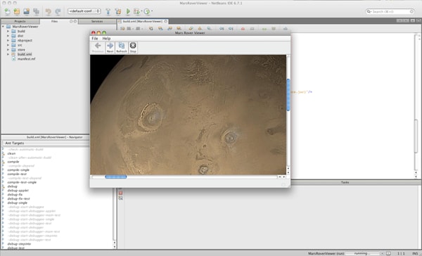 From here, you can continue normal development, editing Java source files and compiling and running as necessary. Figure 4 shows the Mars Rover Viewer application fully built and running within the NetBeans IDE.